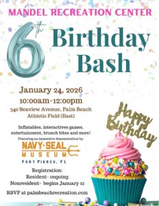 We’re tuning SIX!  Join us on the Oakley Gage Debbs Athletic Field as we celebrate six amazing years of recreation, connection, and community at the Mandel Recreation Center.  Featuring inflatables, interactive games, brunch bites, and an immersive demonstration by the Navy Seal Museum!